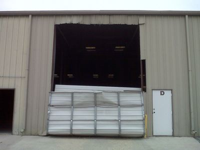 Don't let your door get to this point. Give us a call. We offer annual maintenance and repairs.